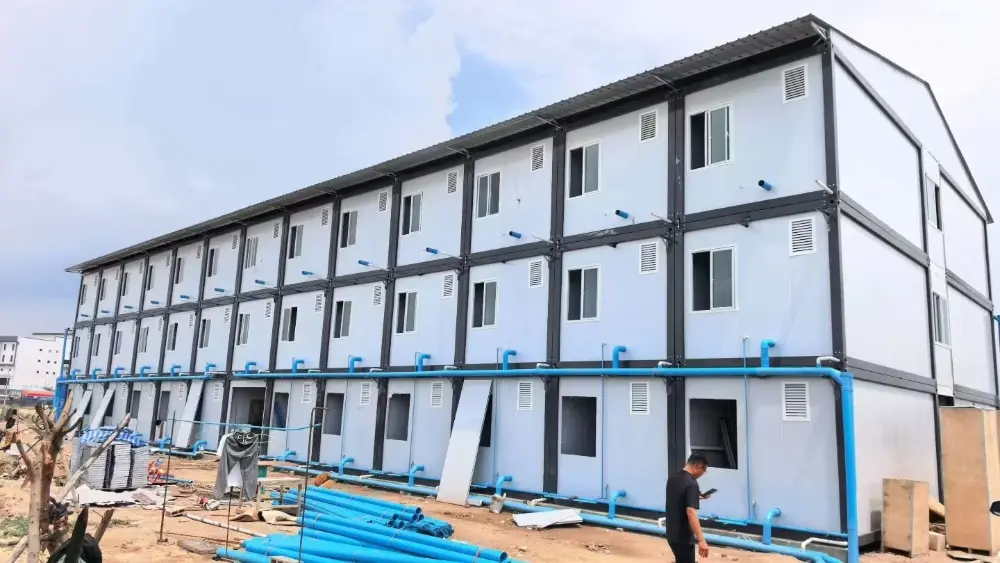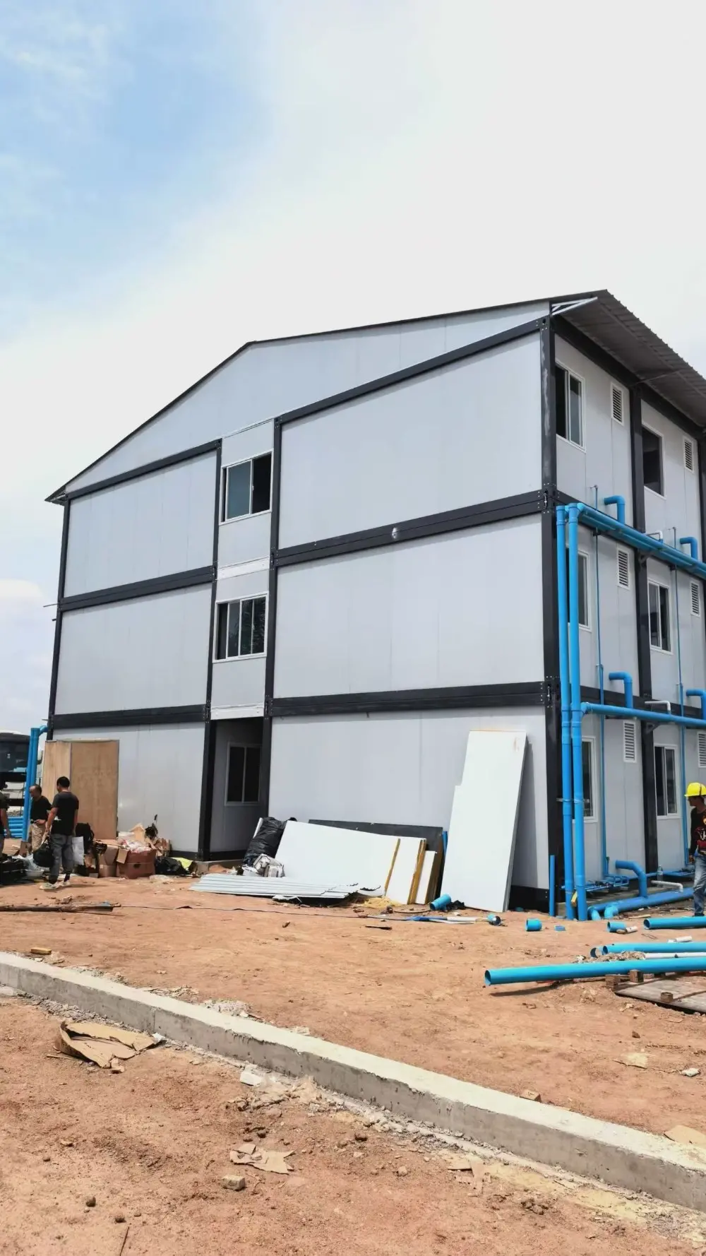 2. Integrierte Systemvernetzung gewährleistet die Einhaltung der Vorschriften bei der Installation: Bereits in der Werksvorfertigungsphase wird das gesamte System, einschließlich Tragwerk, Wasser- und Stromversorgung, Brandschutz und Niederspannungsanlagen, vorkonfiguriert. Mehrere Standard-Schnittstellenkästen sind für die Vernetzung vorgesehen. Vor Ort ist lediglich eine Verschraubung erforderlich, um eine nahtlose Verbindung im gesamten System herzustellen. Dadurch entfällt die Notwendigkeit zusätzlicher Rohrleitungen und Verkabelung. Das gesamte Brandschutzsystem verfügt über eine integrierte Alarmvernetzung und ein vollständig vernetztes Wasserversorgungs- und Abwassernetz, das die nationalen Normen für dicht besiedelte Gewerbe- und Büroflächen vollständig erfüllt und somit die Einhaltung der Vorschriften bei der Installation gewährleistet.